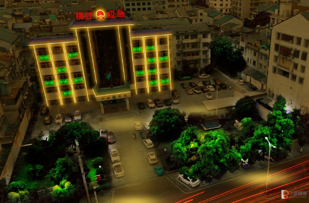 湖南省益陽市桃江縣應(yīng)急管理中心燈光設(shè)計方案,方案彩用線條燈、竹造型燈、發(fā)光字等組成,顯示楠竹之鄉(xiāng)的特點(diǎn),開啟旅游城市的街景夜游模式。