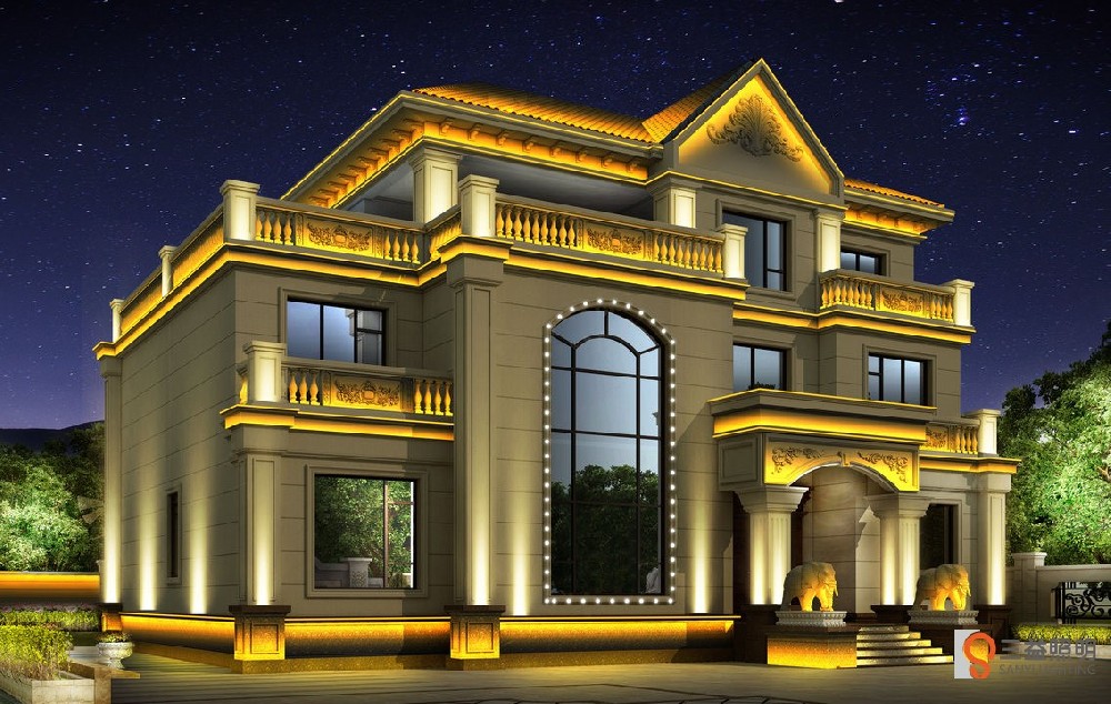 別墅燈光采用3D漫游設(shè)計,燈具采用專業(yè)工程款瓦楞燈、洗墻燈、LED投光燈、高檔柱頭燈、壁燈、草坪燈等,整體燈光營造浪漫、溫馨的環(huán)境。
