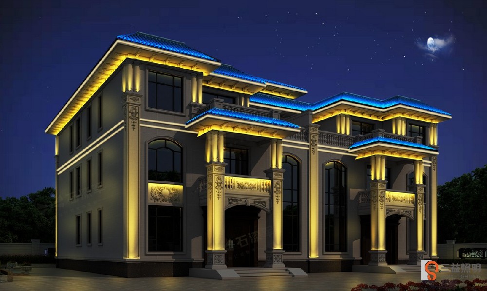 益陽市資陽區(qū)新橋河鎮(zhèn)田總別墅燈光設(shè)計項(xiàng)目別墅外墻燈光設(shè)計,別墅 燈光亮化設(shè)計,農(nóng)村自建房燈光工程,跟據(jù)墻體外觀特色,使用燈光勾勒出別墅造型,使鄉(xiāng)村別墅在夜間也能綻···