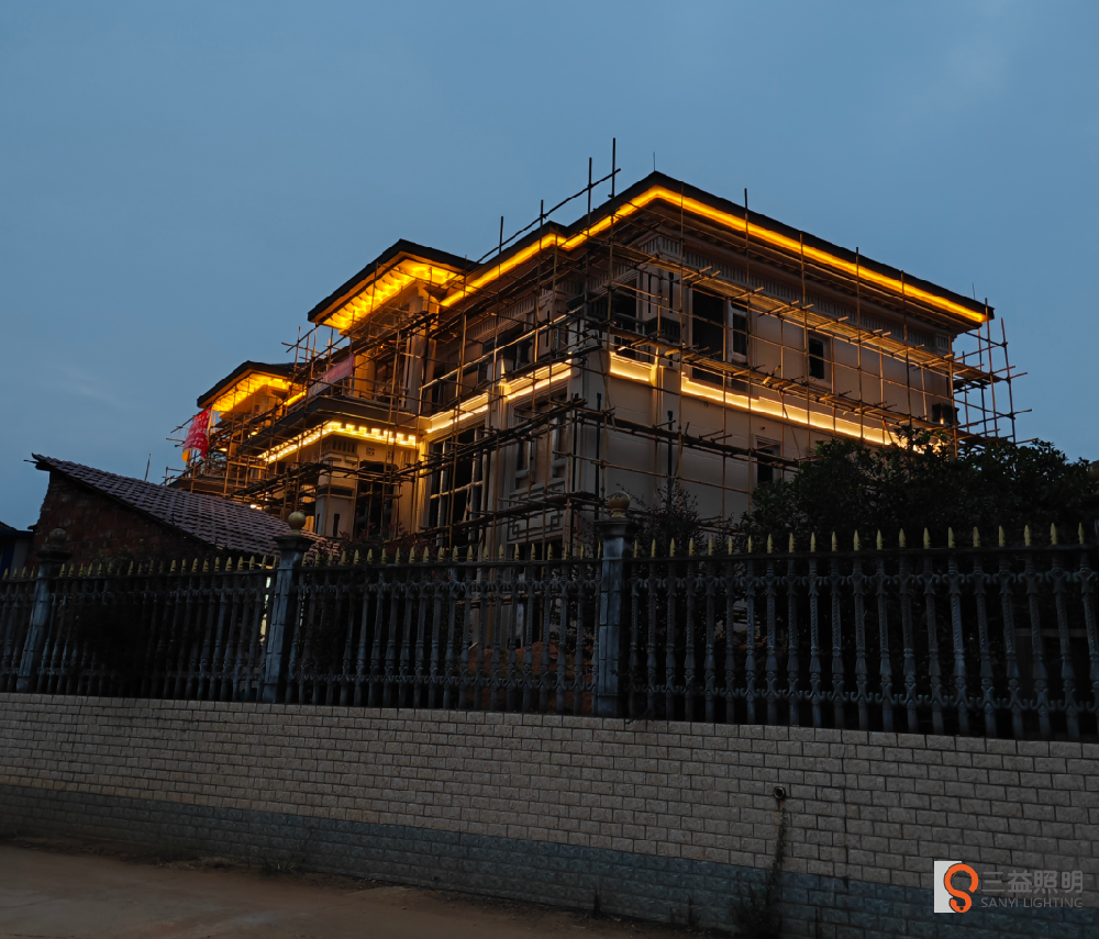 高新區(qū)謝林港鎮(zhèn)何總別墅燈光亮化施工何總別墅采用洗墻燈,投光燈對(duì)墻體墻托、柱子進(jìn)行燈光布置,增強(qiáng)別墅夜景氛圍,使別墅大氣又不張揚(yáng)。